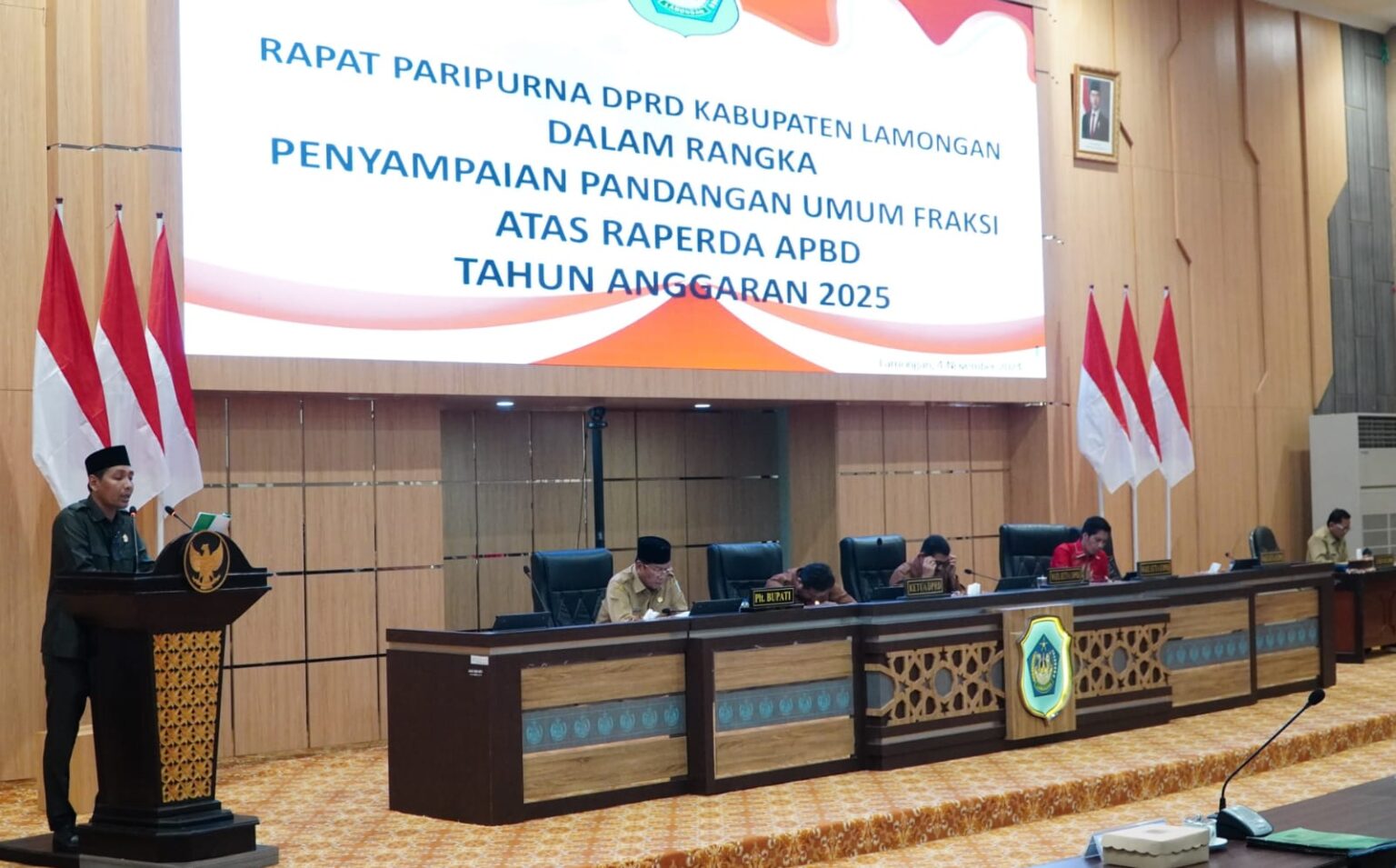 Dalam kesempatan yang sama, DPRD Lamongan melalui tujuh fraksi, juga memberi tanggapan atas Rancangan Peraturan Daerah (Raperda) Anggaran Pendapatan dan Belanja Daerah (APBD) Lamongan tahun anggaran 2025.