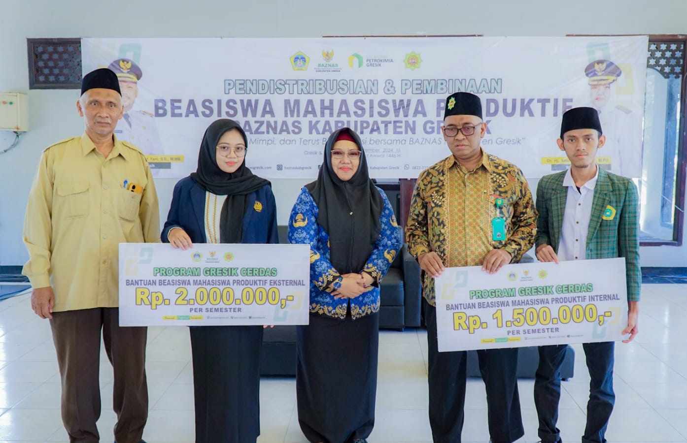 Beasiswa produktif yang diberikan oleh Baznas Gresik merupakan dukungan finansial, untuk membantu mahasiswa asal Gresik menyelesaikan pendidikan, agar fokus tanpa harus terbebani biaya. Mahasiswa internal menerima bantuan beasiswa sebesar Rp1,5 juta per semester, sedangkan eksternal mendapat Rp2 juta per semester.