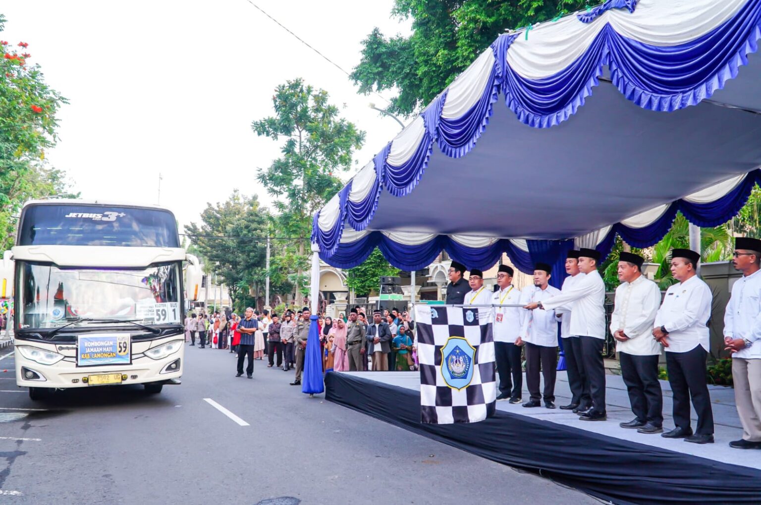 Pemberangkatan tersebut dilaksanakan di depan Pendopo Lokatantra, Lamongan, Senin (19/5/2025). Dengan di hadapan dua kloter tersebut (masing-masing berjumlah 380 jamaah haji), Pak Yes-sapaan Bupati Lamongan Yuhronur Efendi menegaskan, supaya seluruh jamaah haji menjaga kesehatan. Karena kesehatan menjadi faktor penting, pada saat para jamaah menjalankan seluruh rangkaian ibadah haji.