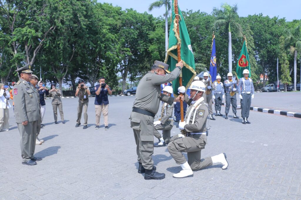 Prosesi penyerahan simbol dilakukan oleh Kepala Satuan Polisi Pamong Praja (Satpol PP) Lamongan Jarwito, kepada Achmad Washil selaku inspektur upacara. Diteruskan kepada Kepala Dinas Satpol PP Gresik, Agustin Halomoan Sinaga. Sementara kirab pataka JBMB yang bertepatan dengan tahapan Pemilihan Kepala Daerah (Pilkada) serentak 2024, membuat tema yang diusung ‘Sigap Pilkada Damai (Sipadam) Jatim Tahun 2024.’