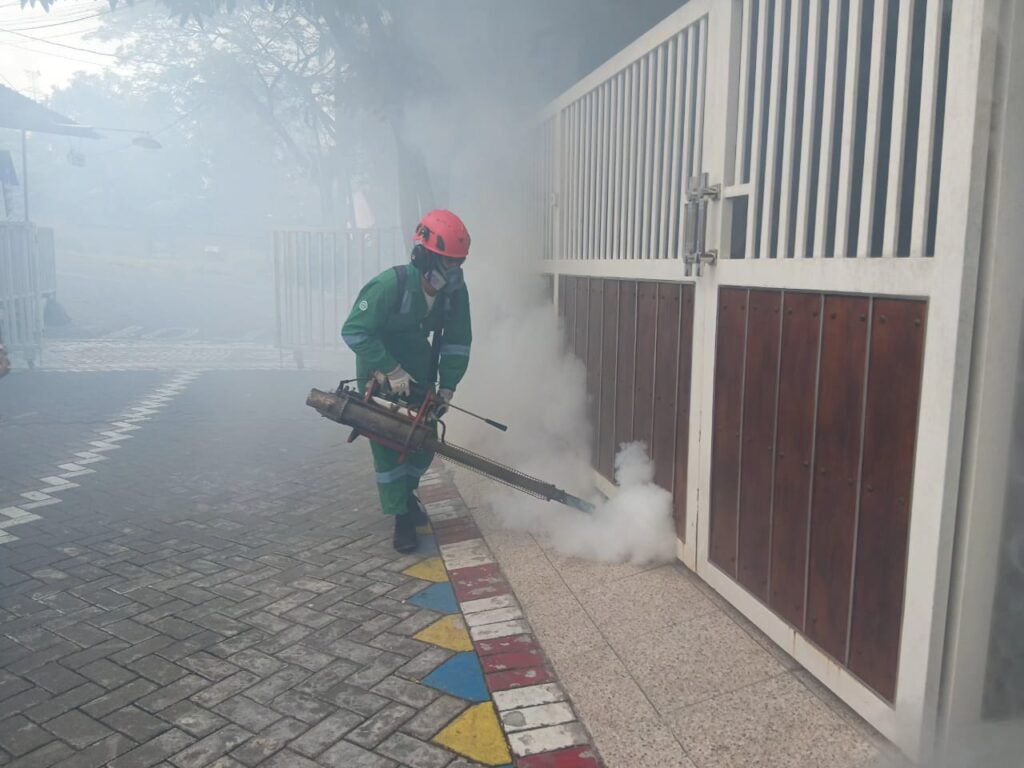 MINATBACA.com – Pemerintah Desa (Pemdes) Sekarkurung, Kecamatan Kebomas, Gresik, melakukan fogging serentak dan sosialisasi menguras jamban serta penampungan bak maupun kaleng bekas yang berpotensi digenangi air.