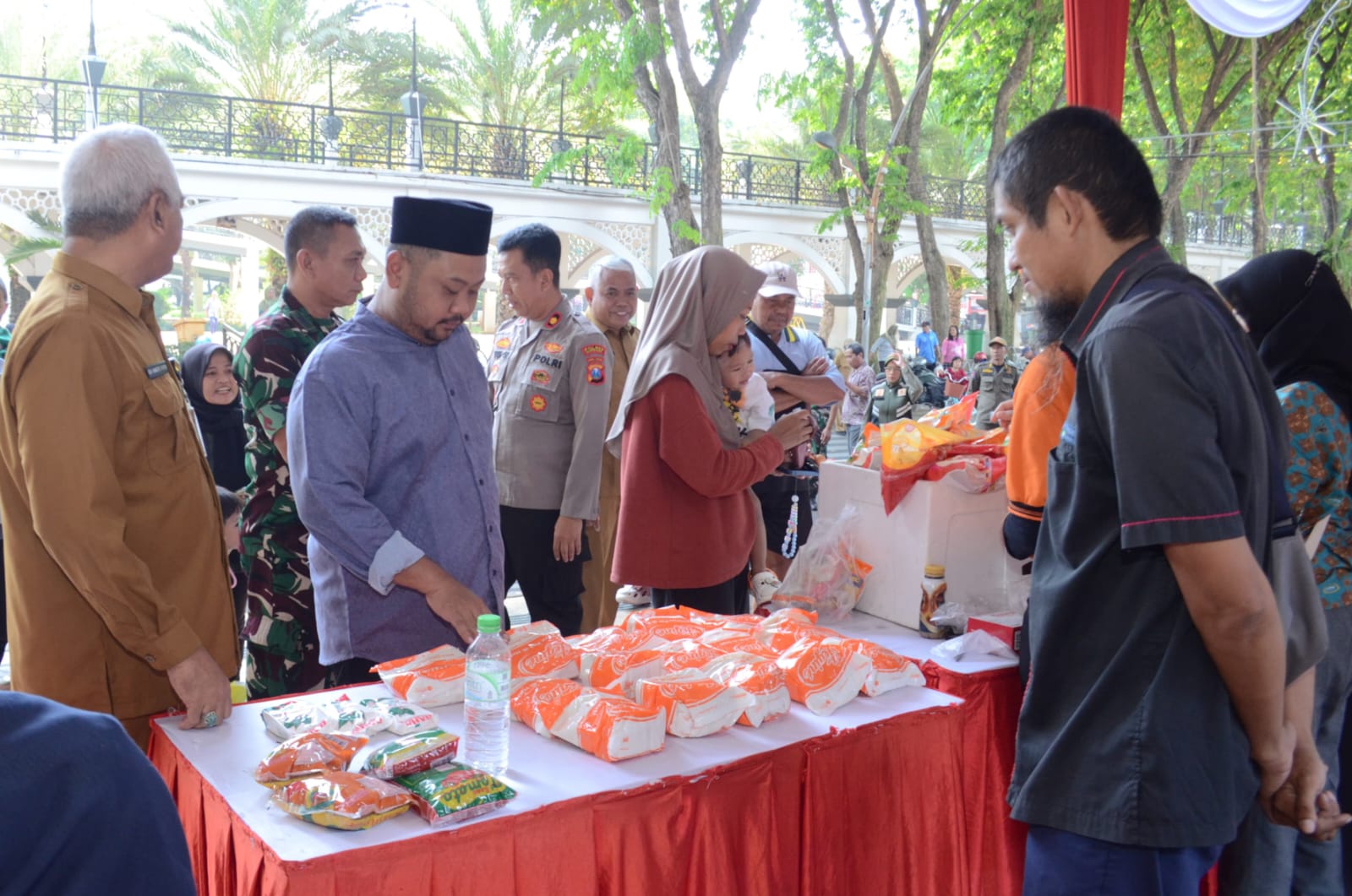 “Untuk hari ini ada sembilan titik pelaksanaan, dan khusus di Pendopo kami siapkan delapan ton. Jika stok kurang, kami akan berkoordinasi dengan Bulog, dan insya Allah siap untuk dropping tambahan,” ujar Eko.