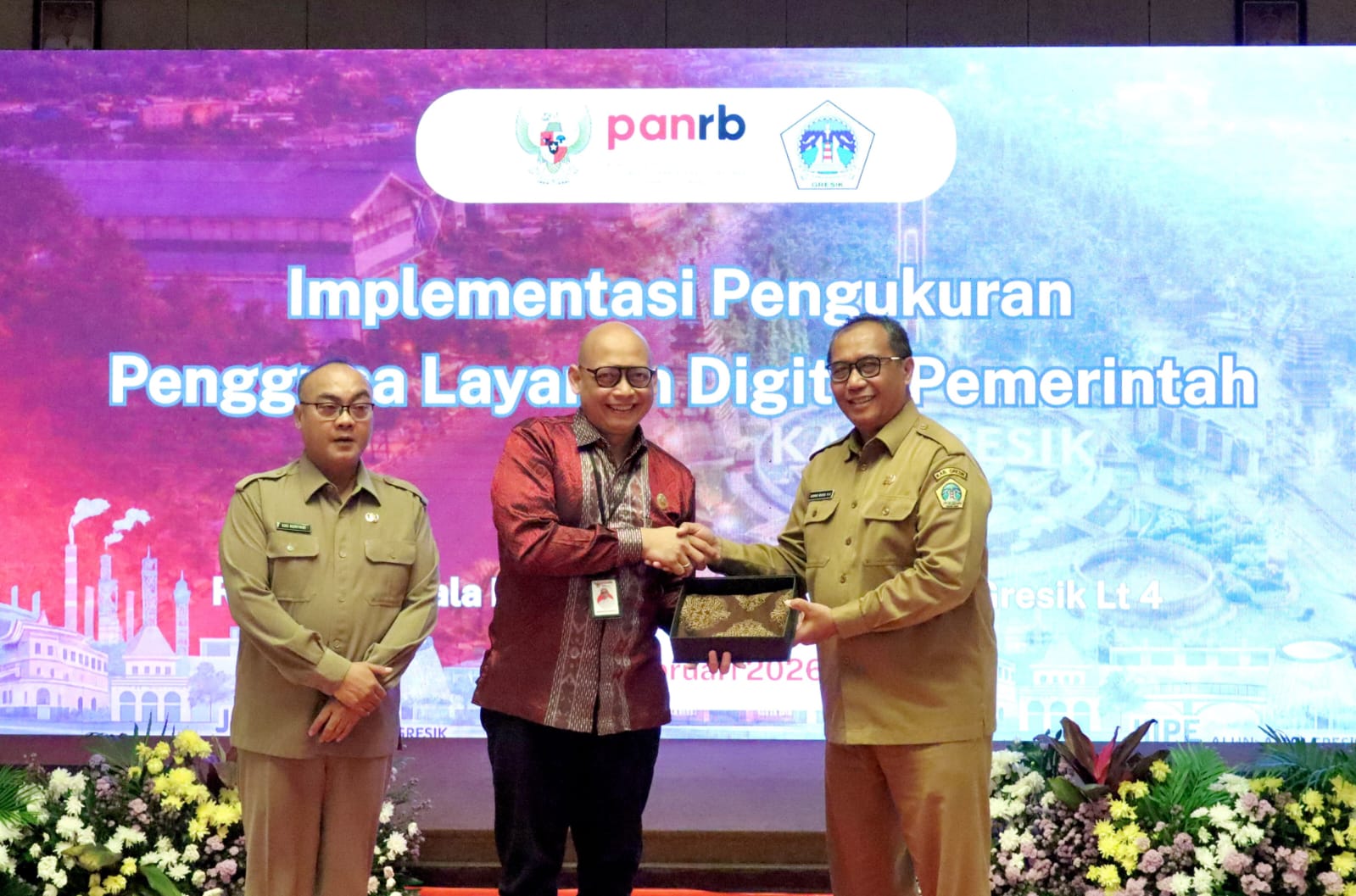 Komitmen tersebut ditegaskan melalui kegiatan ‘Implementasi Pengukuran Kepuasan Pengguna Layanan Digital Pemerintah,’ yang dilaksanakan di Kabupaten Gresik, Selasa (10/2/2026). Dengan Sekretaris Daerah Kabupaten Gresik Achmad Washil Miftahul Rachman mengatakan, transformasi digital pemerintahan saat ini tidak lagi cukup diukur dari keberadaan aplikasi atau sistem semata, melainkan dari dampak nyata yang dirasakan oleh masyarakat sebagai pengguna layanan.