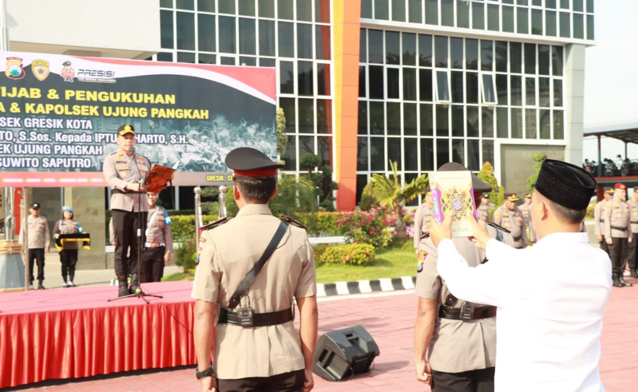 Adapun dalam sertijab tersebut, jabatan Kapolsek Gresik Kota diserahkan dari AKP Rahmat Triyanto kepada Iptu Suharto. Sementara Iptu Suwito Saputro, dikukuhkan menjabat sebagai Kapolsek Ujung Pangkah.