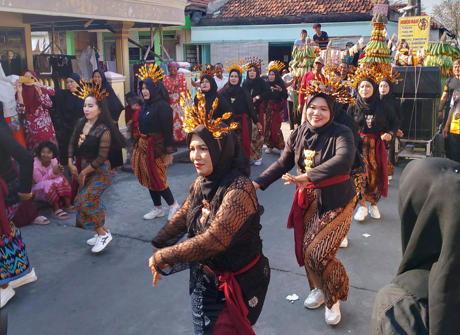Warga yang menjadi peserta, menampilkan tarian dengan mengenakan pakaian adat Jawa untuk menghibur penonton, dengan iringan musik yang dipandu oleh DJ. Bahkan di antara peserta, ada yang mengenakan kostum ultraman hingga membawa dupa layaknya seorang dukun.