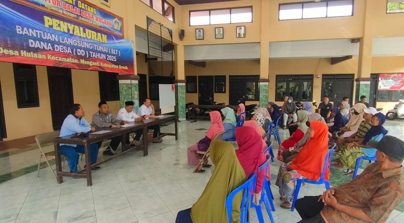 MINATBACA.com – Pemerintah Desa (Pemdes) Hulaan, Kecamatan Menganti, Gresik menyalurkan Bantuan Lansung Tunai yang bersumber dari Dana Desa (BLT DD) untuk Bulan Juni 2025 kepada sebanyak 58 Keluarga Penerima Manfaat (KPM).
