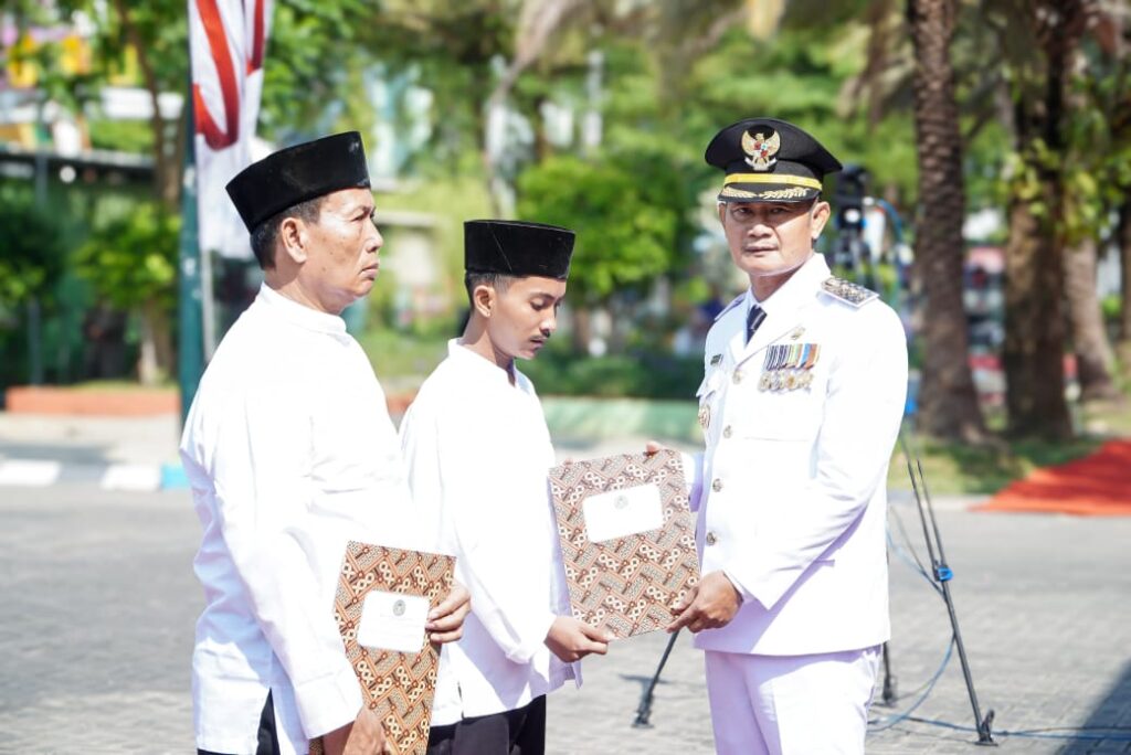 Penyerahan tali asih tersebut dilakukan oleh Bupati Lamongan Yuhronur Efendi, usai melaksanakan upacara peringatan Hari Ulang Tahun (HUT) kemerdekaan Republik Indonesia (RI) ke-80 di Lamongan, yang dilaksanakan di Alun-Alun Lamongan, Minggu (17/8/2025) pagi WIB.
