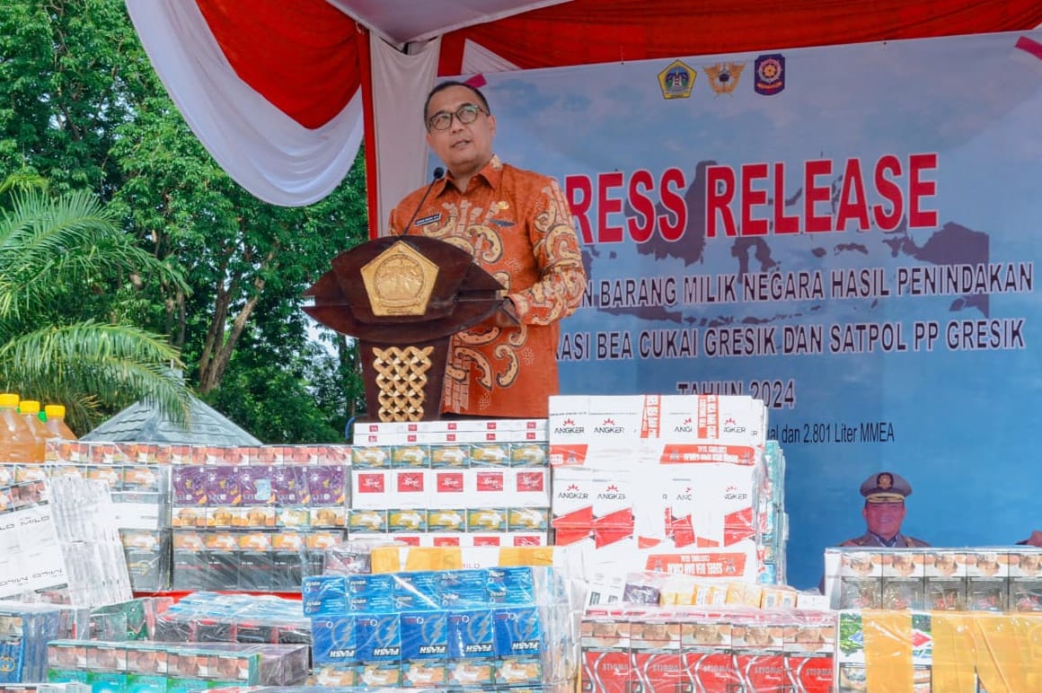 Selama periode 2023 hingga Oktober 2024, hasil operasi penindakan yang dilaksanakan Satpol PP dan Bea Cukai Gresik ada sebanyak 6.201.740 batang rokok ilegal, dengan berbagai jenis dan merk. Serta terdapat juga 2.801 liter minuman, yang mengandung etil alkohol (MMEA).