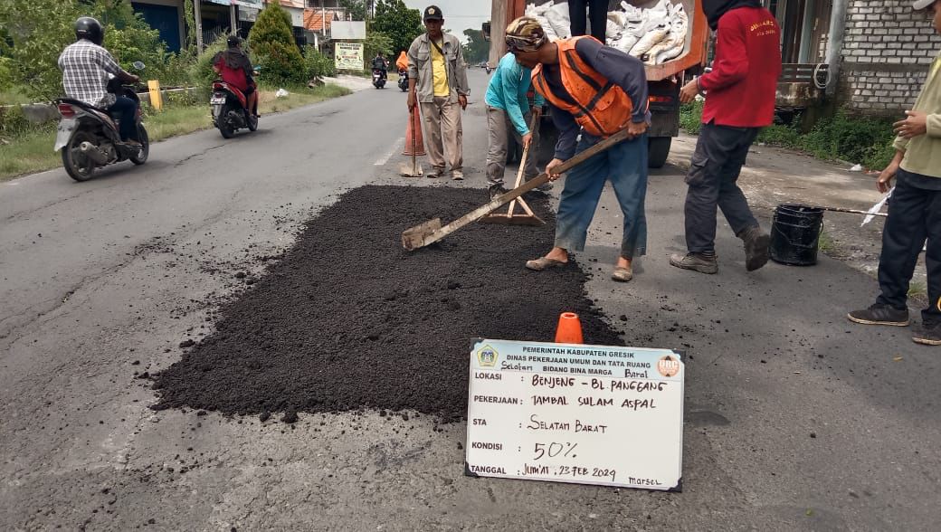 GRESIK – Intensitas hujan tinggi yang beberapa pekan terakhir mengguyur wilayah Kabupaten Gresik, membawa dampak penurunan kondisi beberapa titik jalan. Pemerintah Kabupaten (Pemkab) Gresik melalui Tim Unit Reaksi Cepat (URC) di bawah Dinas Pekerjaan Umum dan Tata Ruang (PUTR) kemudian bereaksi dengan melakukan perbaikan.