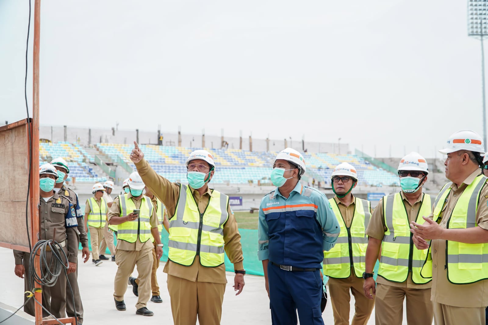 Pertama, rombongan meninjau progres pembangunan Stadion Surajaya yang saat ini sudah mencapai 58 persen, untuk dapat memenuhi standar kriteria yang ditetapkan oleh induk sepakbola dunia, FIFA. Dengan pengerjaan saat ini, sedang melakukan tahap pemasangan kursi tribun penonton, finishing lantai di area bawah, pekerjaan landscape dan penghijauan rumput stadion.