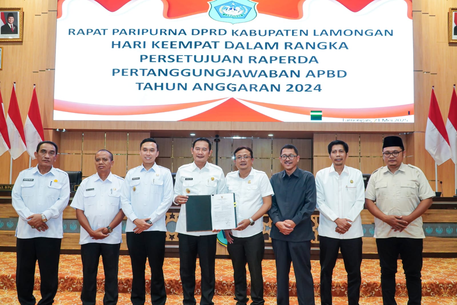 Tidak hanya disetujui, namun juga telah ditetapkan menjadi Peraturan Daerah (Perda) pada agenda rapat paripurna hari keempat dalam rangka persetujuan Raperda pertanggungjawaban APBD oleh DPRD Lamongan, di ruang rapat paripurna DPRD Lamongan, Rabu (21/5/2025).
