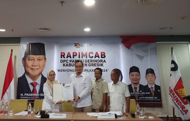 Dukungan tersebut didapat dari hasil Rapat Pimpinan Cabang (Rapimcab) yang dilaksanakan Dewan Pimpinan Cabang (DPC) Partai Gerindra Gresik, yang dihadiri oleh ketua dan perwakilan Pimpinan Anak Cabang (PAC) di Hotel Khas, Gresik, Sabtu (27/4/2024).