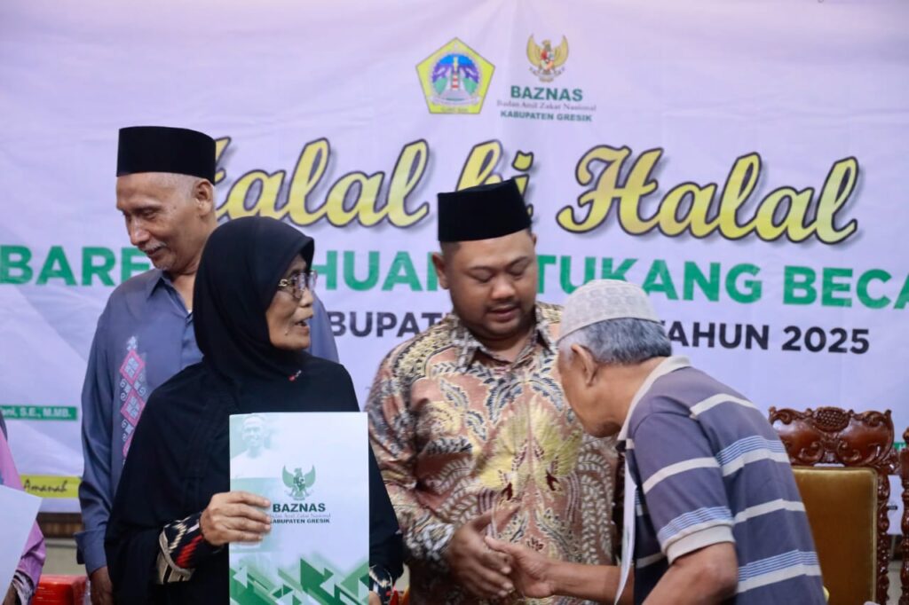 Komitmen tersebut diwujudkan kepada 90 penerima manfaat yang terdiri dari dhuafa dan tukang becak, bertempat di Aula Putri Mijil, Kamis (17/6/2025). Di mana kegiatan ini juga merupakan bagian dari sinergi antara Pemerintah Kabupaten (Pemkab) Gresik dan Badan Amil Zakat Nasional (Baznas) Gresik, untuk memperkuat jaring pengaman sosial bagi masyarakat prasejahtera.