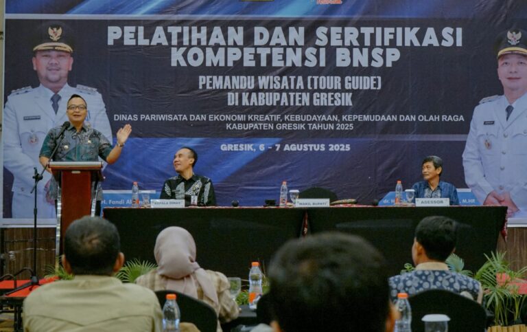 Hal tersebut disampaikan oleh Wakil Bupati (Wabup) Gresik Asluchul Alif, pada saat membuka agenda pelatihan pemandu wisata (tour guide) yang diselenggarakan oleh Dinas Pariwisata Ekonomi Kreatif Kebudayaan dan Olahraga (Disparekrafbudpora). Kegiatan dilaksanakan di Hotel Horison, Gresik, Kamis (7/8/2025).