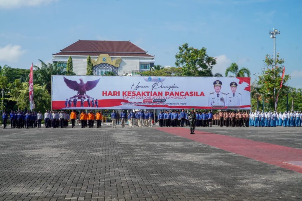 Kegiatan tersebut dilaksanakan di Alun Alun Lamongan, Rabu (1/10/2025). Di mana digelarnya upacara, bukan sebagai upacara bendera semata. Melainkan momentum yang membawa pesan kepada generasi muda, agar memahami betapa pentingnya Pancasila sebagai dasar dan ideologi bangsa. Dengan itu, generasi bangsa akan memiliki jiwa nasionalisme dan patriotisme.
